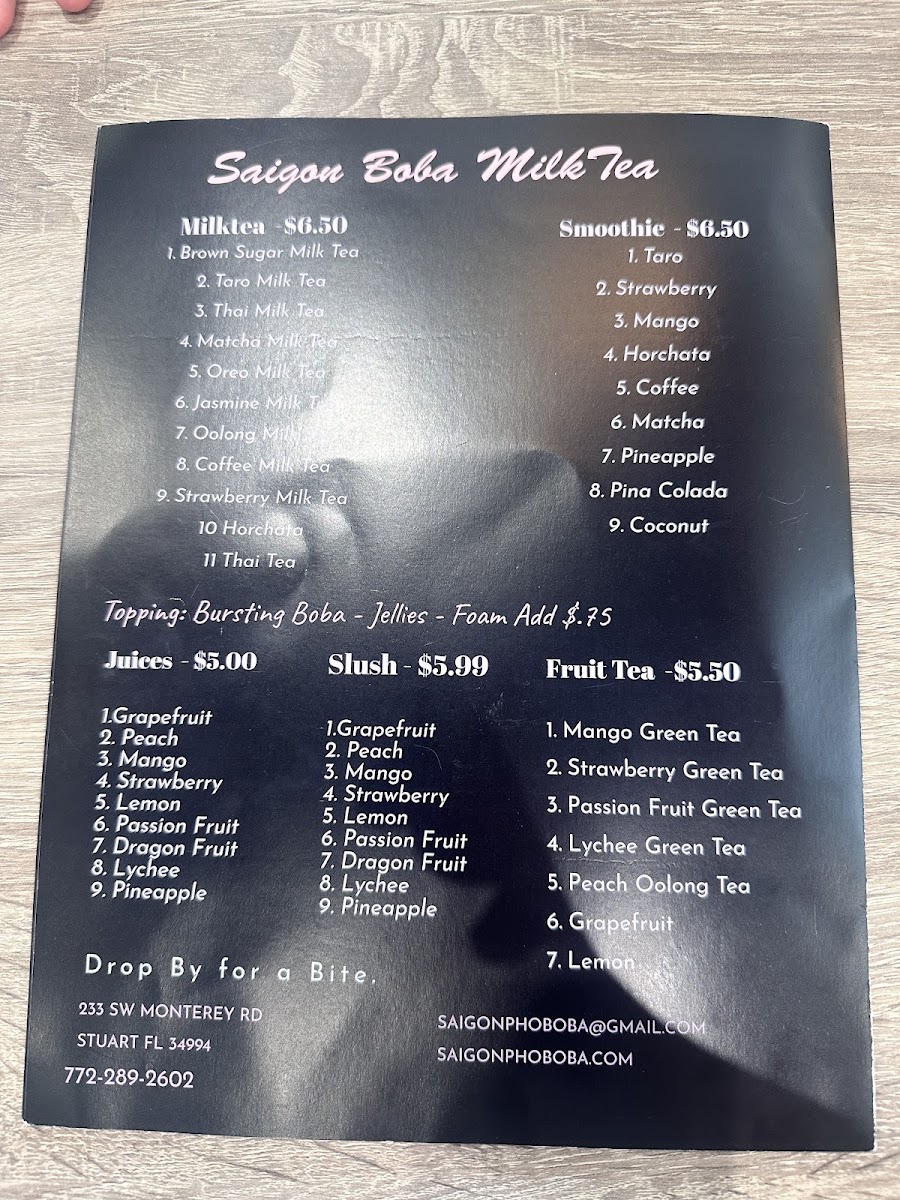 Welcome to Saigon Pho & Boba MilkTea, a culinary gem nestled in Stuart, FL, renowned for its authentic Vietnamese cuisine. The menu features a delightful array of dishes, with highlights including the robust Steak Pho, where the flavorful, generous portions are sure to satisfy even the heartiest of appetites. The homemade ingredients shine in the traditional banh mi, featuring fresh baked bread and a careful selection of pickled vegetables that perfectly complement the rare steak.